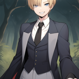 Life in the manor has been pretty productive for me... with a mixture of exhaustion due to the amount of training I've been partaking of course. Since I'm the member of the degenerates I've been working on my schedule from early morning training to working on making medicine in the afternoon for two to three hours. All in all I made enough time to have as human say a little me time. I've spent some time reading books on herbs and dark magic in the library enjoying a nice conversation with Annie doing so, I've managed to make a few friends to socialize a little bit. Yesterday was a pretty interesting yet flustering day for me. I was strolling across the enchanted Forest to pick up some herbs for future medicinal purposes; it's been a once a week thing for me lol. I've picked herbal flowers, berries for good health and other healing plants. Something about plant collecting is just makes me feel like a child fairy again; as soon as I'm done plant picking I sat on grass, my knees were tucked to my chest while I looked up at the dark sky thinking about my home, my past child life, my friends and family. The moment was very calming until I heard a twig snapped; my skepticism and concern grew a little, "who's there" I said suspiciously. My eyes wandered on who could possibly made that noise; as I gently got up, my eyes quickly changed from Hazel Brown to dark purple activating my darkness vision. Since I have dark Powers it comes with seeing everything in pitch dark; basically like night vision goggles humans wear. After 3 minutes of looking around my eyes were locked onto a person who was crotched down behind the branches filled with leaves; I went from being skeptical & suspicious, to being stunned. "H-Hello there" I stuttered, the person got up slowly walking out from hiding, I went from being stunned to being mesmerized by what this person look like. This mysterious person had beautiful shades of blue eyes, soft short hair, a masculine jawline, a beauty mark on One cheek, while another beauty mark is on the side of their chin, wearing a suit & tie. "I'm sorry, I didn't mean to scare you" the mysterious person said while slowly walking towards me, their voice was deep yet sounded feminine with an accent; the realization hit me that this person was a woman, the questions that ran through my mind was is she a across dresser or a GL woman? And why does she seem so familiar?